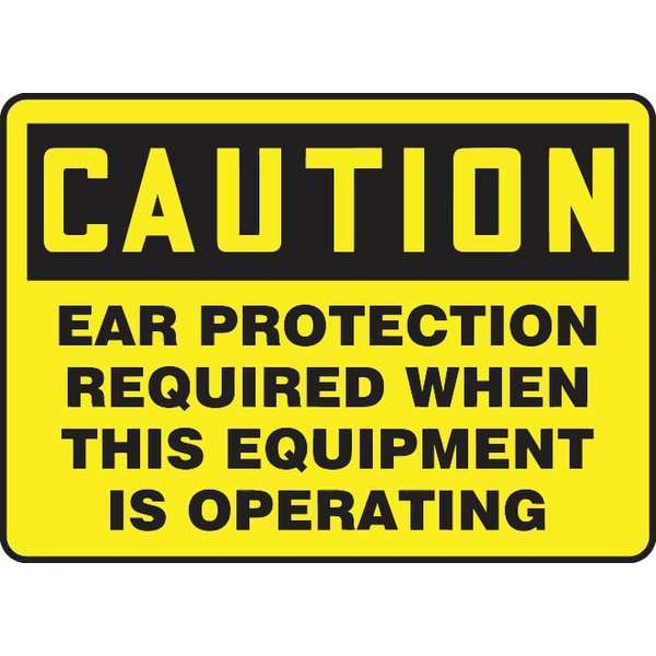 Caution Sign, Sign Subject Matter Personal Protection, Height 10 in, Width 14 in, Sign Material Aluminum, Header Caution, Legend Ear Protection Required When This Equipment Is Operating, Printed Language English, Sign Shape Rectangle