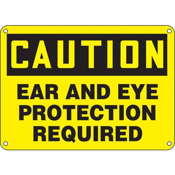 Caution Sign, Sign Subject Matter Personal Protection, Height 10 in, Width 14 in, Sign Material Plastic, Header Caution, Legend Ear And Eye Protection Required, Printed Language English, Sign Shape Rectangle
