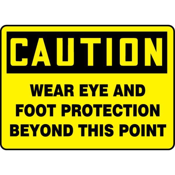 Caution Sign, Sign Subject Matter Personal Protection, Height 10 in, Width 14 in, Sign Material Plastic, Header Caution, Legend Wear Eye And Foot Protection Beyond This Point, Printed Language English, Sign Shape Rectangle