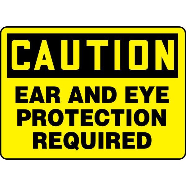 Caution Sign, Sign Subject Matter Personal Protection, Height 10 in, Width 14 in, Sign Material Vinyl, Header Caution, Legend Ear And Eye Protection Required, Printed Language English, Sign Shape Rectangle