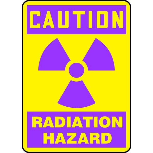 Caution Sign, Sign Subject Matter Radiation and X-Ray, Height 14 in, Width 10 in, Sign Material Vinyl, Sign Mounting Style Adhesive Surface, Header Caution, Legend Radiation Hazard, Printed Language English, Sign Shape Rectangle