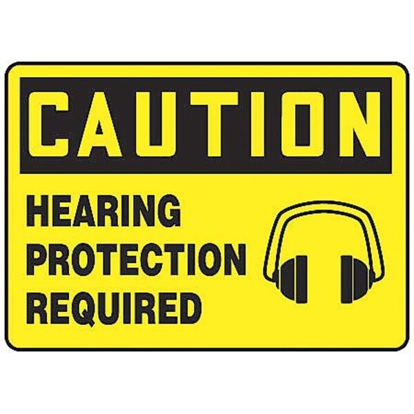 Caution Sign, Sign Subject Matter Personal Protection, Height 7 in, Width 10 in, Sign Material Vinyl, Header Caution, Legend Hearing Protection Required, Printed Language English, Sign Shape Rectangle