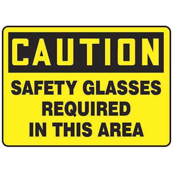 Caution Sign, Sign Subject Matter Personal Protection, Height 7 in, Width 10 in, Sign Material Vinyl, Header Caution, Legend Safety Glasses Required In This Area, Printed Language English, Sign Shape Rectangle