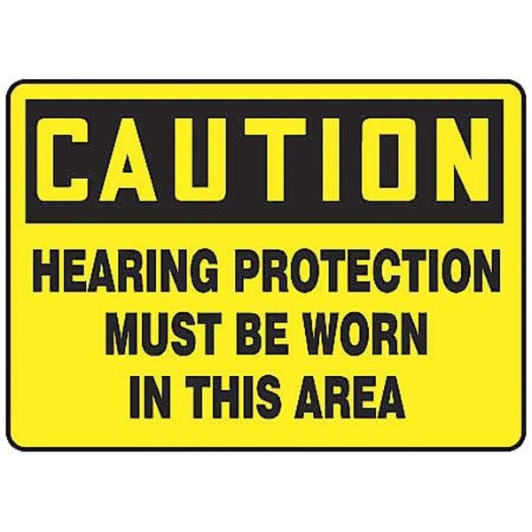Caution Sign, Sign Subject Matter Personal Protection, Height 7 in, Width 10 in, Sign Material Plastic, Header Caution, Legend Hearing Protection Must Be Worn In This Area, Printed Language English, Sign Shape Rectangle