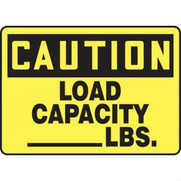 Accuform Caution Sign, Header CAUTION, Text Legend, Legend MAXIMUM LOAD LBS, 4 mil Vinyl, 7 in Height, 10 in WidthSafety Signs identify and indicate potential, type, and degree of hazards that may lead to accidental injury or property damage Adhesive Vinyl is the ideal choice for a variety of indoor, and sheltered outdoor, marking needs Easily mounts to all curved areas such as pipes, poles, and secondary containers Adhesive Vinyl signs feature a printed matte surface, moistureresistance, and scored backing for quick peeloff and application