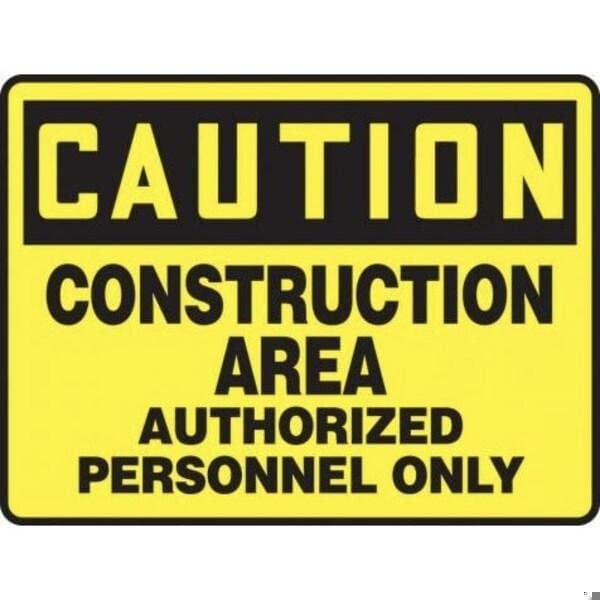 Accuform Caution Sign, Header CAUTION, Text Legend, Legend CONSTRUCTION AREA AUTHORIZED PERSONNEL ONLY, 6 mil Adhesive DuraVinyl, Acrylic Adhesive Mounting, 7 in Height, 10 in WidthSafety Signs identify and indicate potential, type and degree of hazards that may lead to accidental injury or property damage Duallayered Adhesive DuraVinyl delivers exceptional flexibility and performance, outperforming standard vinyl Printed image is protected by a highgloss UV protective coating Adhesive DuraVinyl is durable, even in the toughest indoor and outdoor conditions and adheres to most smooth, curved and irregular surfaces