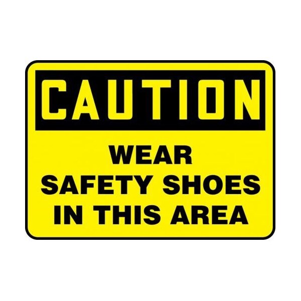 Accuform Caution Sign, Header CAUTION, Text Legend, Legend WEAR SAFETY SHOES IN THIS AREA, 004 in Aluminum, 7 in Height, 10 in Width, Black on Yellow LegendBackgroundSafety Signs identify and indicate potential, type and degree of hazards that may lead to accidental injury or property damage Aluminum signs withstand washdowns, harsh elements, abusive conditions and feature good chemical, abrasion and impact resistance Aluminum is excellent for indoor and outdoor usage, making it ideal for a wide variety of industrialstrength applications