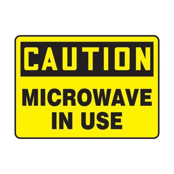 Accuform Caution Sign, Header CAUTION, Text Legend, Legend MICROWAVE in USE, 004 in Aluminum, 10 in Height, 14 in Width, Black on Yellow LegendBackgroundSafety Signs identify and indicate potential, type, and degree of hazards that may lead to accidental injury or property damage Aluminum signs withstand washdowns, harsh elements, abusive conditions, and feature good chemical, abrasion, and impact resistance Aluminum is excellent for indoor and outdoor usage, making it ideal for a wide variety of industrialstrength applications