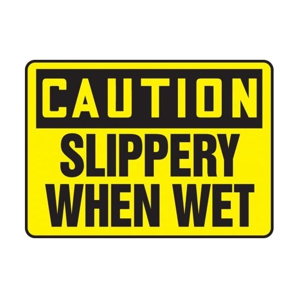 Accuform Caution Sign, Header CAUTION, Text Legend, Legend SLIPPERY WHEN WET, 004 in Aluminum, 10 in Height, 14 in Width, Black on Yellow LegendBackgroundSafety Signs identify and indicate potential, type, and degree of hazards that may lead to accidental injury or property damage Aluminum signs withstand washdowns, harsh elements, abusive conditions, and feature good chemical, abrasion, and impact resistance Aluminum is excellent for indoor and outdoor usage, making it ideal for a wide variety of industrialstrength applications