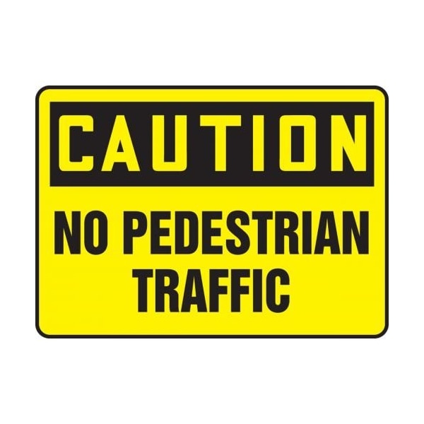 Accuform Caution Sign, Rectangle, Header CAUTION, Text Legend, Legend NO PEDESTRIAN TRAFFIC, 4 mil Adhesive Vinyl, 7 in Height, 10 in Width, Yellow on Black LegendBackgroundSafety Signs identify and indicate potential, type and degree of hazards that may lead to accidental injury or property damage Adhesive Vinyl is the ideal choice for a variety of indoor and sheltered outdoor, marking needs Easily mounts to all curved areas such as pipes, poles and secondary containers Adhesive Vinyl signs feature a printed matte surface, moistureresistance and scored backing for quick peeloff and application