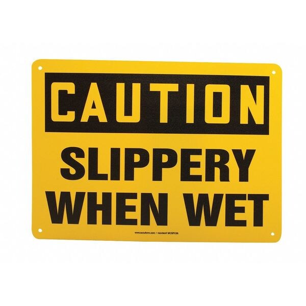 Accuform Caution, Slippery When Wet, 14" W x 10" H, Rectangle, Vinyl MSTF642VS
