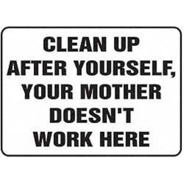 Housekeeping Sign, Height 10 In., Width 14 In., Legend Clean Up After Yourself, Your Mother Doesn't Work Here
