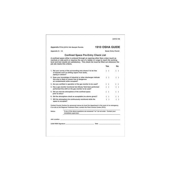 CONFINED SPACE PERMITS SEWER ENTRY CBS248