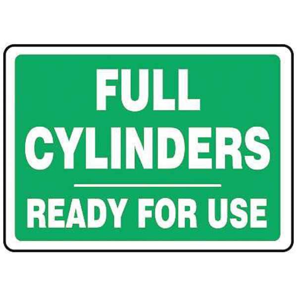 Cylinder Sign, Sign Subject Matter Chemical, Gas or Hazardous Materials, Height 10 in, Width 14 in, Sign Material Aluminum, Sign Mounting Style With Mounting Holes, Header No Header, Legend Full Cylinders Ready For Use, Printed Language English, Sign Shape Rectangle