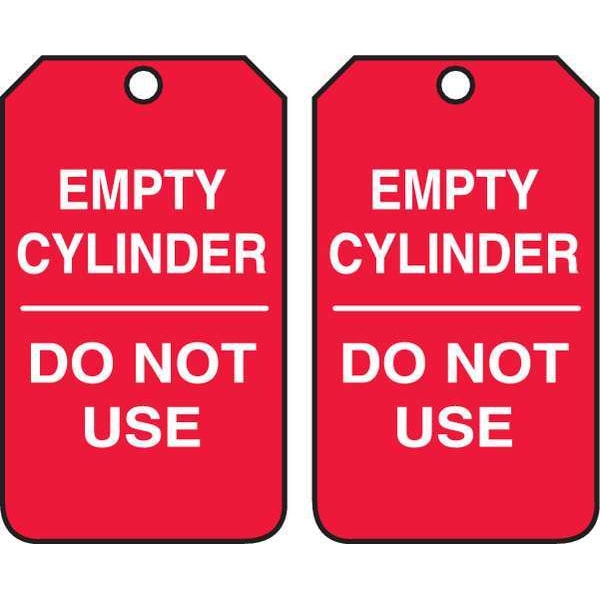 Cylinder Tag, Subject Matter Status Alert, Sign Legend Empty Cylinder Do Not Use, Legend Same on Both Sides Yes, Tag Style Single Part, Shape Rectangular, Safety Tag Legend - Back Side Empty Cylinder Do Not Use, Package Quantity 25