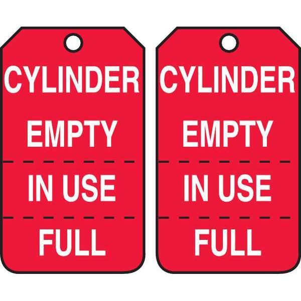 Cylinder Tag, Status Alert, Plastic, 5 3/4 in H x 3 1/4 in W, Red, Rectangle, 25 PK