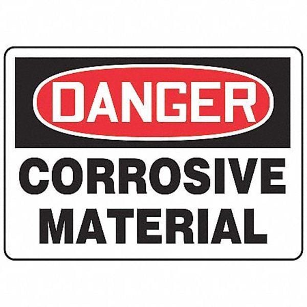 Danger Sign, Sign Subject Matter Chemical, Gas or Hazardous Materials, Height 10 in, Width 14 in, Sign Material Plastic, Sign Mounting Style With Mounting Holes, Header Danger, Legend Corrosive Material, Printed Language English, Sign Shape Rectangle