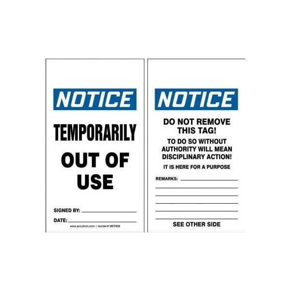 Accuform OSHA NOTICE SAFETY TAG TEMPORARILY MDT808PTP