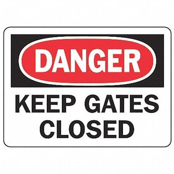 Danger Sign, Sign Subject Matter Door Instruction, Height 7 In., Width 10 In., Sign Material Plastic, Sign Mounting Style With Mounting Holes, Header Danger, Legend Keep Gates Closed, Printed Language English, Sign Shape Rectangle