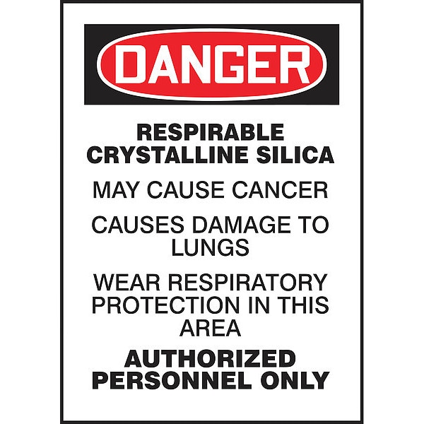 Safety Label, Vertical Rectangle, Number of Printed Sides 1, English, Sign Format Traditional OSHA, Sign Legend Respirable Crystalline Silica May Cause Cancer Causes Damage To Lungs Wear Respiratory Protection In This Area Authorized Personnel Only, Sign Legend Background Color White, Sign Legend Style Text