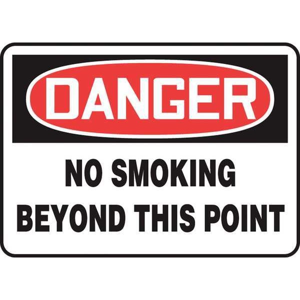 Danger No Smoking Sign, Sign Subject Matter No Smoking, Height 10 in, Width 14 in, Sign Material Aluminum, Sign Mounting Style With Mounting Holes, Header Danger, Legend No Smoking Beyond This Point, Printed Language English, Sign Shape Rectangle