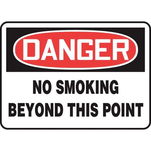 Danger No Smoking Sign, Sign Subject Matter No Smoking, Height 7 in, Width 10 in, Sign Material Vinyl, Sign Mounting Style Adhesive Surface, Header Danger, Legend No Smoking Beyond This Point, Printed Language English, Sign Shape Rectangle