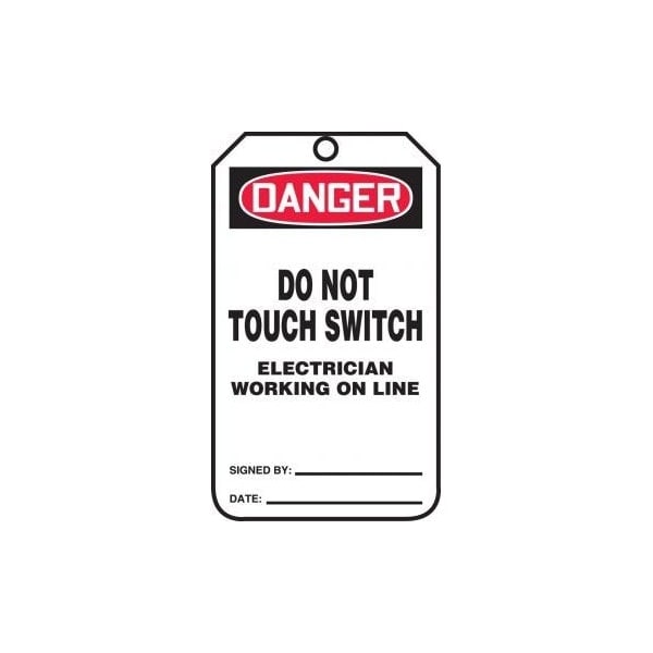 Safety Tags, DANGER DO NOT TOUCH SWITCH ELECTRICIAN WORKING ON LINE, 5.75in x 3.25in, RP-Plastic, 25PK