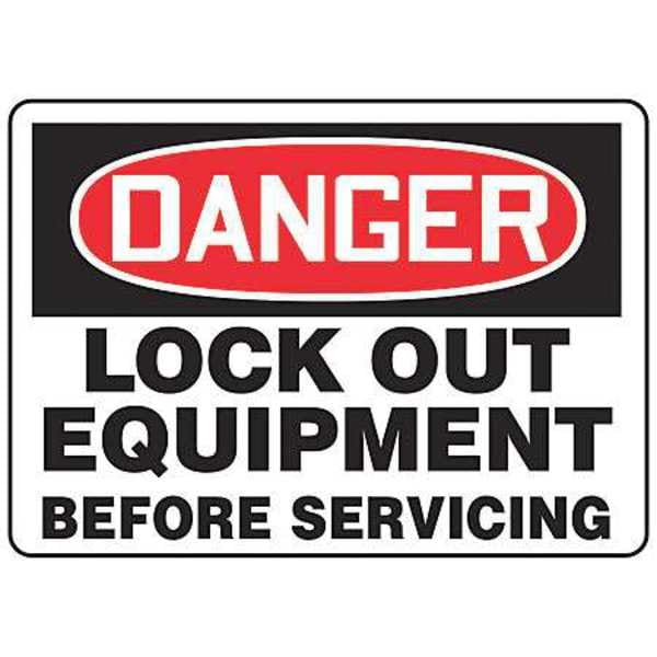 Danger Sign, Sign Subject Matter Lockout Tagout, Height 10 in, Width 14 in, Sign Material Vinyl, Sign Mounting Style Adhesive Surface, Header Danger, Legend Lock Out Equipment Before Servicing, Printed Language English, Sign Shape Rectangle