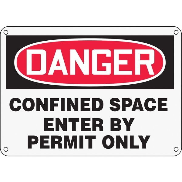 Danger Sign, Sign Subject Matter Confined Space, Height 10 in, Width 14 in, Sign Material Plastic, Sign Mounting Style With Mounting Holes, Header Danger, Legend Confined Space Enter By Permit Only, Printed Language English, Sign Shape Rectangle