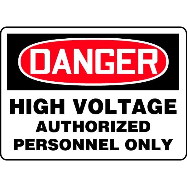 Danger Sign, Sign Subject Matter Electrical Hazard, Height 10 in, Width 14 in, Sign Material Aluminum, Sign Mounting Style With Mounting Holes, Header Danger, Legend High Voltage Authorized Personnel Only, Printed Language English, Sign Shape Rectangle
