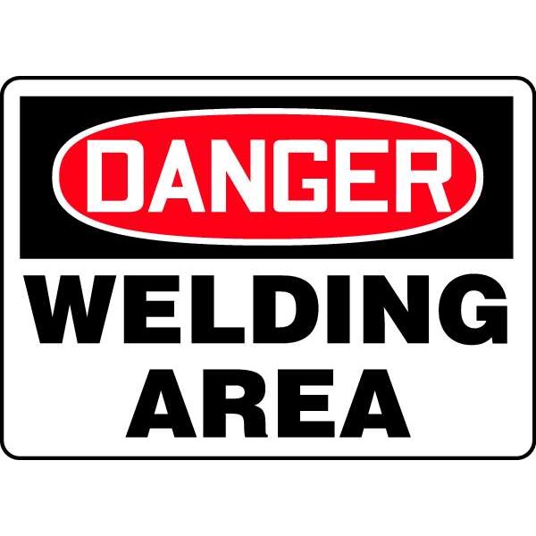 Danger Sign, Sign Subject Matter Welding Hazard, Height 10 in, Width 14 in, Sign Material Plastic, Sign Mounting Style With Mounting Holes, Header Danger, Legend Welding Area, Printed Language English, Sign Shape Rectangle