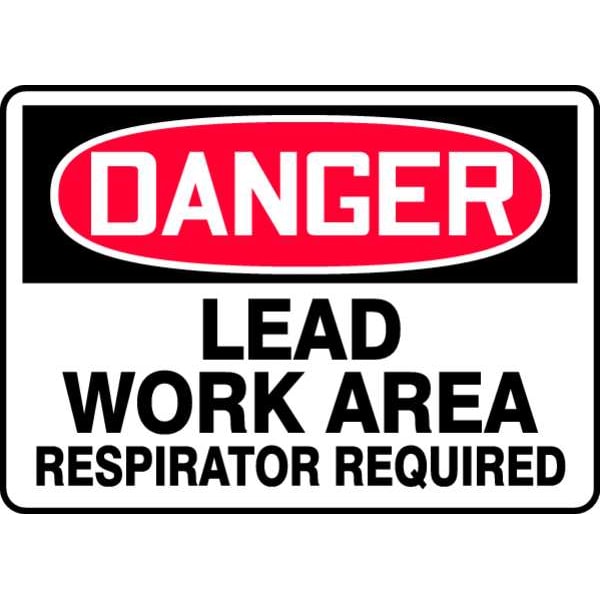 Danger Sign, Sign Subject Matter Personal Protection, Height 10 in, Width 14 in, Sign Material Aluminum, Sign Mounting Style With Mounting Holes, Header Danger, Legend Lead Work Area Respirator Required, Printed Language English, Sign Shape Rectangle