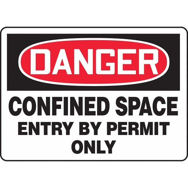 Danger Sign, Sign Subject Matter Confined Space, Height 10 in, Width 14 in, Sign Material Aluminum, Sign Mounting Style With Mounting Holes, Header Danger, Legend Confined Space Entry By Permit Only, Printed Language English, Sign Shape Rectangle