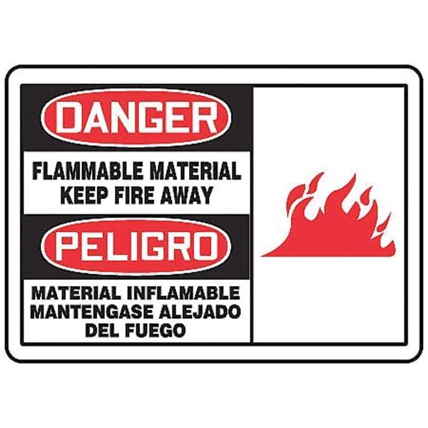 Danger Sign, Sign Subject Matter Chemical, Gas or Hazardous Materials, Height 3 1/2 in, Width 5 in, Sign Material Vinyl, Sign Mounting Style Surface, Header Danger, Legend Flammable Material Keep Fire Away/Material Inflamable Mantengase Alejado Del Fuego, Printed Language English, Spanish, Package Quantity 5