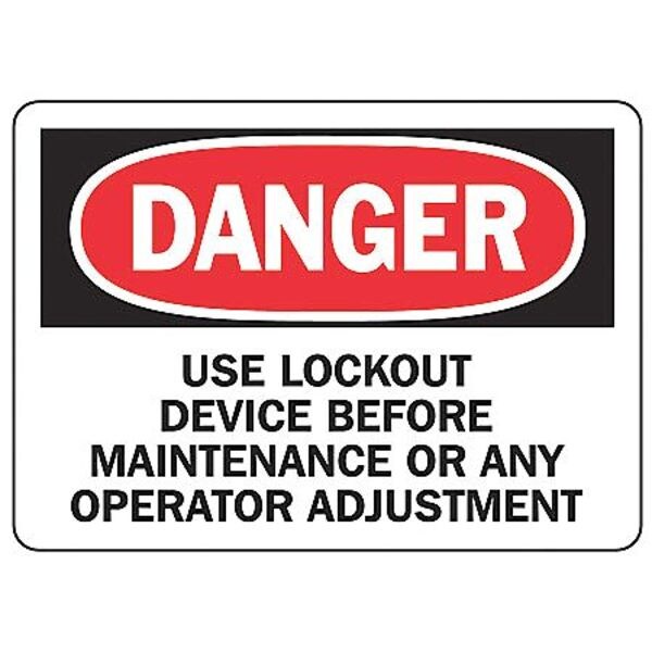 Danger Sign, Sign Subject Matter Lockout Tagout, Height 7 in, Width 10 in, Sign Material Aluminum, Sign Mounting Style With Mounting Holes, Header Danger, Legend Use Lockout Device Before Maintenance Or Any Operator Adjustment, Printed Language English, Sign Shape Rectangle