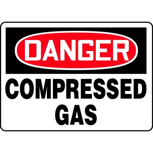 Danger Sign, Sign Subject Matter Chemical, Gas or Hazardous Materials, Height 7 in, Width 10 in, Sign Material Aluminum, Sign Mounting Style With Mounting Holes, Header Danger, Legend Compressed Gas, Printed Language English, Sign Shape Rectangle