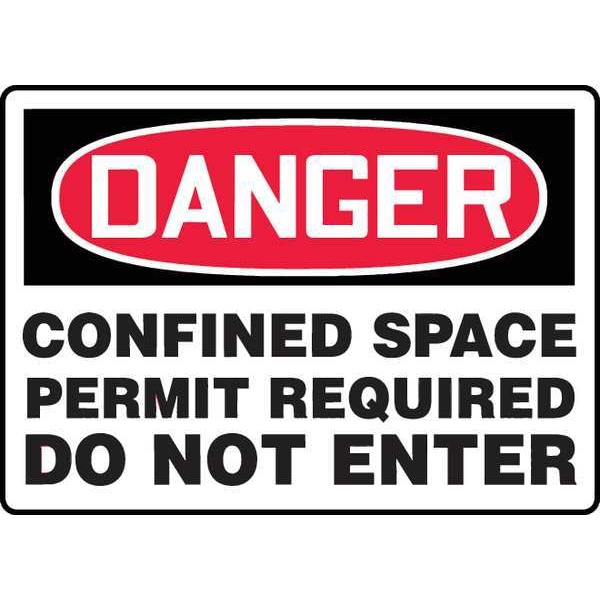 Danger Sign, Sign Subject Matter Confined Space, Height 7 in, Width 10 in, Sign Material Aluminum, Sign Mounting Style With Mounting Holes, Header Danger, Legend Confined Space Permit Required Do Not Enter, Printed Language English, Sign Shape Rectangle