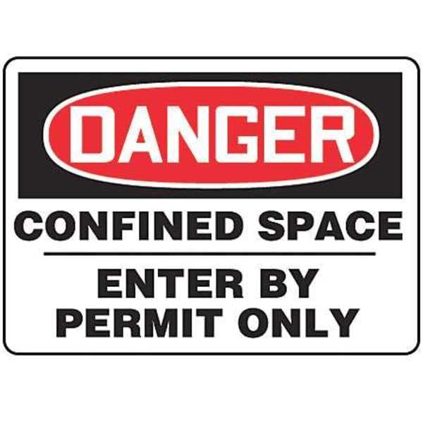 Danger Sign, Sign Subject Matter Confined Space, Height 7 in, Width 10 in, Sign Material Vinyl, Sign Mounting Style Adhesive Surface, Header Danger, Legend Confined Space Enter By Permit Only, Printed Language English, Sign Shape Rectangle