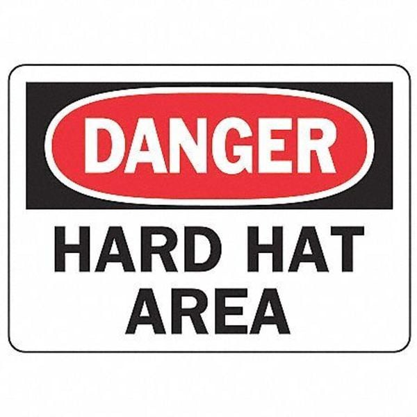 Danger Sign, Sign Subject Matter Personal Protection, Height 7 in, Width 10 in, Sign Material Vinyl, Sign Mounting Style Adhesive Surface, Header Danger, Legend Hard Hat Area, Printed Language English, Sign Shape Rectangle