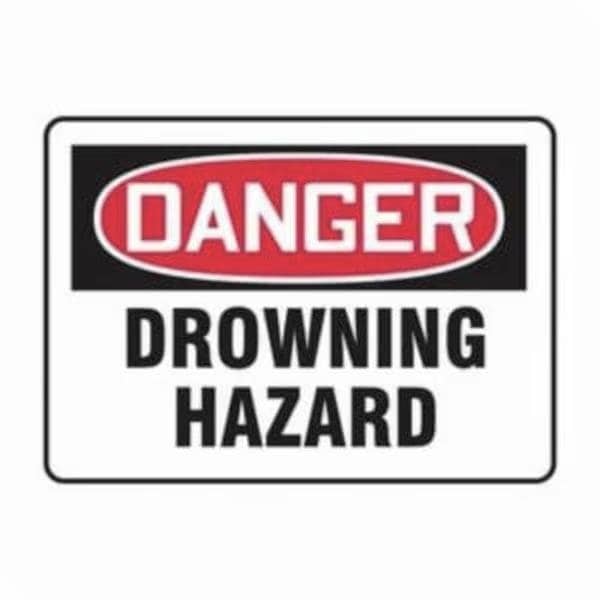 Accuform Danger Sign, Header DANGER, Text Legend, Legend DROWNING HAZARD, 6 mil Adhesive DuraVinyl, 10 in Height, 14 in WidthSafety Signs identify and indicate potential, type, and degree of hazards that may lead to accidental injury or property damage Duallayered Adhesive DuraVinyl delivers exceptional flexibility and performance, outperforming standard vinyl Printed image is protected by a highgloss UV protective coating Adhesive DuraVinyl is durable, even in the toughest indoor and outdoor conditions, and adheres to most smooth, curved, and irregular surfaces