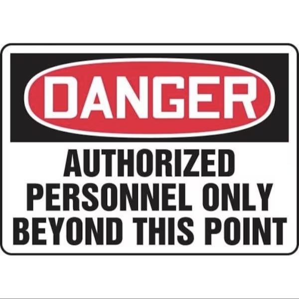 Accuform Danger Sign, Header DANGER, Text Legend, Legend AUTHORIZED PERSONNEL ONLY BEYOND THIS POINT, 6 mil Adhesive DuraVinyl, Acrylic Adhesive Mounting, 7 in Height, 10 in WidthSafety Signs identify and indicate potential, type and degree of hazards that may lead to accidental injury or property damage Duallayered Adhesive DuraVinyl delivers exceptional flexibility and performance, outperforming standard vinyl Printed image is protected by a highgloss UV protective coating Adhesive DuraVinyl is durable, even in the toughest indoor and outdoor conditions and adheres to most smooth, curved and irregular surfaces