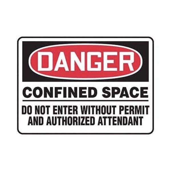 Accuform Danger Sign, Header DANGER, Text Legend, Legend CONFINED SPACE DO NOT ENTER WITHOUT PERMIT AND AUTHORIZED ATTENDANT, 0055 in Plastic, 10 in Height, 14 in Width, RedBlack on white LegendBackgroundSafety Signs identify and indicate potential, type and degree of hazards that may lead to accidental injury or property damage Plastic signs are semiflexible, made with 50 recycled content and ideal for indoor and shortterm, sheltered outdoor environments Plastic signs feature good impact resistance, UV inhibitors and enough flex to mount on slightly curved areas