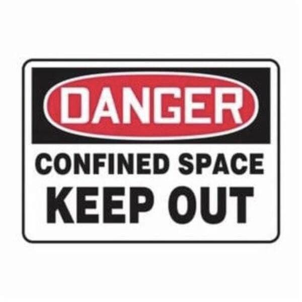 Accuform Danger Sign, Header DANGER, Text Legend, Legend CONFINED SPACE KEEP OUT, 6 mil Adhesive DuraVinyl, Surface Mounting, 10 in Height, 14 in Width, RedBlack on white LegendBackgroundSafety Signs identify and indicate potential, type, and degree of hazards that may lead to accidental injury or property damage Duallayered Adhesive DuraVinyl delivers exceptional flexibility and performance, outperforming standard vinyl Printed image is protected by a highgloss UV protective coating Adhesive DuraVinyl is durable, even in the toughest indoor and outdoor conditions, and adheres to most smooth, curved, and irregular surfaces