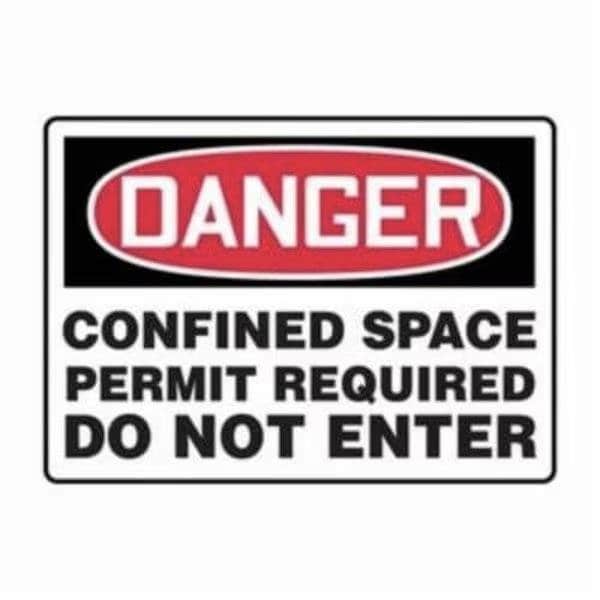 Accuform Danger Sign, Header DANGER, Text Legend, Legend CONFINED SPACE PERMIT REQUIRED DO NOT ENTER, 6 mil Adhesive DuraVinyl, 7 in Height, 10 in WidthSafety Signs identify and indicate potential, type, and degree of hazards that may lead to accidental injury or property damage Duallayered Adhesive DuraVinyl delivers exceptional flexibility and performance, outperforming standard vinyl Printed image is protected by a highgloss UV protective coating Adhesive DuraVinyl is durable, even in the toughest indoor and outdoor conditions, and adheres to most smooth, curved, and irregular surfaces