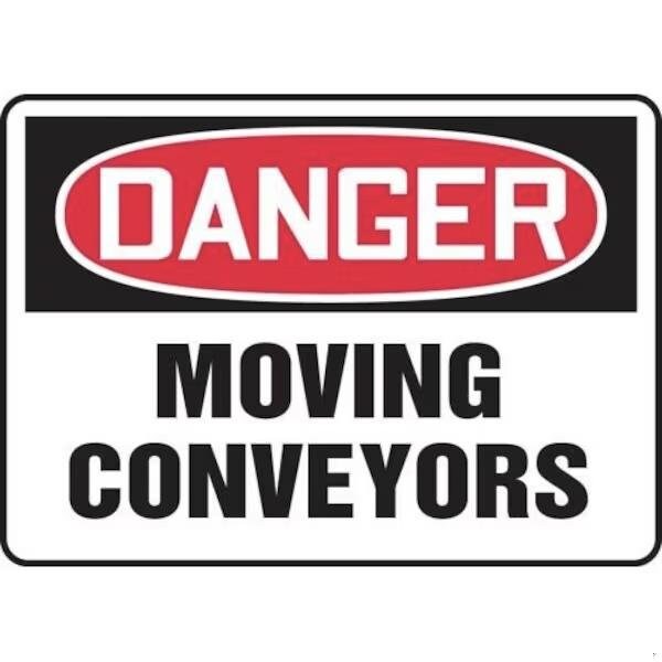 Accuform Danger Sign, Header DANGER, Text Legend, Legend MOVING CONVEYORS, 6 mil Adhesive DuraVinyl, 7 in Height, 10 in WidthSafety Signs identify and indicate potential, type and degree of hazards that may lead to accidental injury or property damage Duallayered Adhesive DuraVinyl delivers exceptional flexibility and performance, outperforming standard vinyl Printed image is protected by a highgloss UV protective coating Adhesive DuraVinyl is durable, even in the toughest indoor and outdoor conditions and adheres to most smooth, curved and irregular surfaces