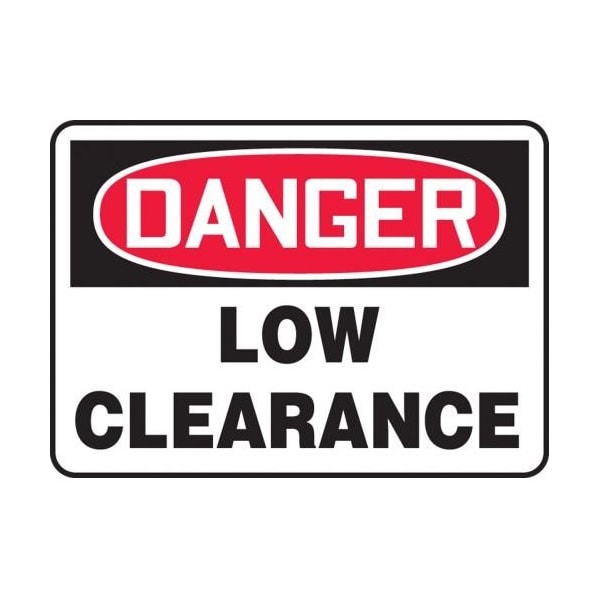 Accuform Danger Sign, Header DANGER, Text Legend, Legend LOW CLEARANCE, 004 in Aluminum, 10 in Height, 14 in Width, RedBlack on white LegendBackgroundSafety Signs identify and indicate potential, type and degree of hazards that may lead to accidental injury or property damage Aluminum signs withstand washdowns, harsh elements, abusive conditions and feature good chemical, abrasion and impact resistance Aluminum is excellent for indoor and outdoor usage, making it ideal for a wide variety of industrialstrength applications
