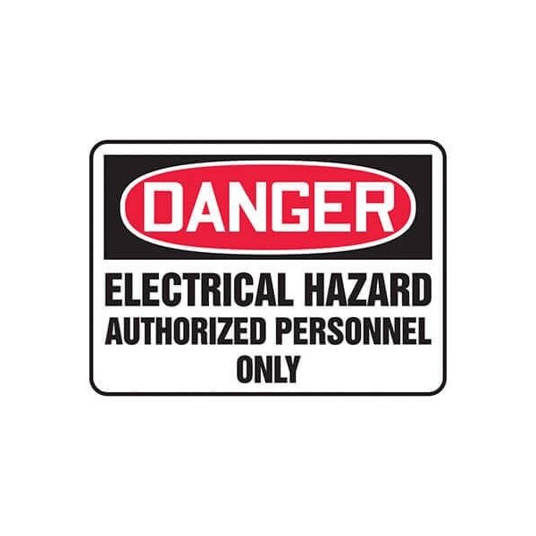 Accuform Danger Sign, Header DANGER, Text Legend, Legend ELECTRICAL HAZARD AUTHORIZED PERSONNEL ONLY, 4 mil Adhesive Vinyl, Surface Mounting, 10 in Height, 14 in Width, RedBlack on white LegendBackgroundSafety Signs identify and indicate potential, type and degree of hazards that may lead to accidental injury or property damage Adhesive Vinyl is the ideal choice for a variety of indoor and sheltered outdoor, marking needs Easily mounts to all curved areas such as pipes, poles and secondary containers Adhesive Vinyl signs feature a printed matte surface, moistureresistance and scored backing for quick peeloff and application