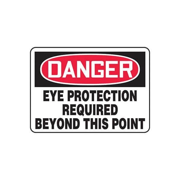 Accuform Danger Sign, Header DANGER, Text Legend, Legend EYE PROTECTION REQUIRED BEYOND THIS POINT, 004 in Aluminum, 7 in Height, 10 in Width, RedBlack on white LegendBackgroundSafety Signs identify and indicate potential, type and degree of hazards that may lead to accidental injury or property damage Aluminum signs withstand washdowns, harsh elements, abusive conditions and feature good chemical, abrasion and impact resistance Aluminum is excellent for indoor and outdoor usage, making it ideal for a wide variety of industrialstrength applications