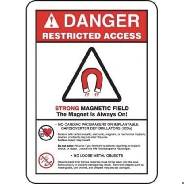 Accuform Danger Sign, DANGER Header, TextSymbol Legend, RESTRICTED ACCESS STRONG MAGNETIC FIELD Legend, 0055 in Plastic, 14 in Height, 10 in WidthSafety Signs identify and indicate potential, type and degree of hazards that may lead to accidental injury or property damage Plastic signs are semiflexible, made with 50 recycled content and ideal for indoor and shortterm, sheltered outdoor environments Plastic signs feature good impact resistance, UV inhibitors and enough flex to mount on slightly curved areas