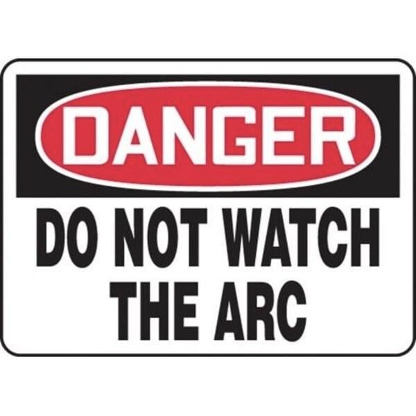 Accuform Danger Sign, Header DANGER, Text Legend, Legend DANGER DO NOT WATCH THE ARC, 6 mil Adhesive DuraVinyl, 10 in Height, 14 in WidthSafety Signs identify and indicate potential, type and degree of hazards that may lead to accidental injury or property damage Duallayered Adhesive DuraVinyl delivers exceptional flexibility and performance, outperforming standard vinyl Printed image is protected by a highgloss UV protective coating Adhesive DuraVinyl is durable, even in the toughest indoor and outdoor conditions and adheres to most smooth, curved and irregular surfaces